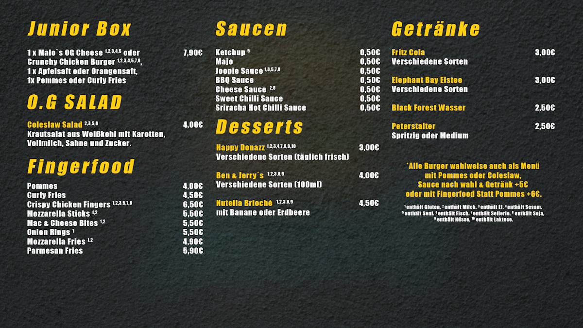 Welcome to the tantalizing world of Malo's Burger, conveniently located at Casterfeldstraße 84, Mannheim, Germany. This unique burger haven promises an unforgettable culinary journey that burger enthusiasts won't want to miss.
